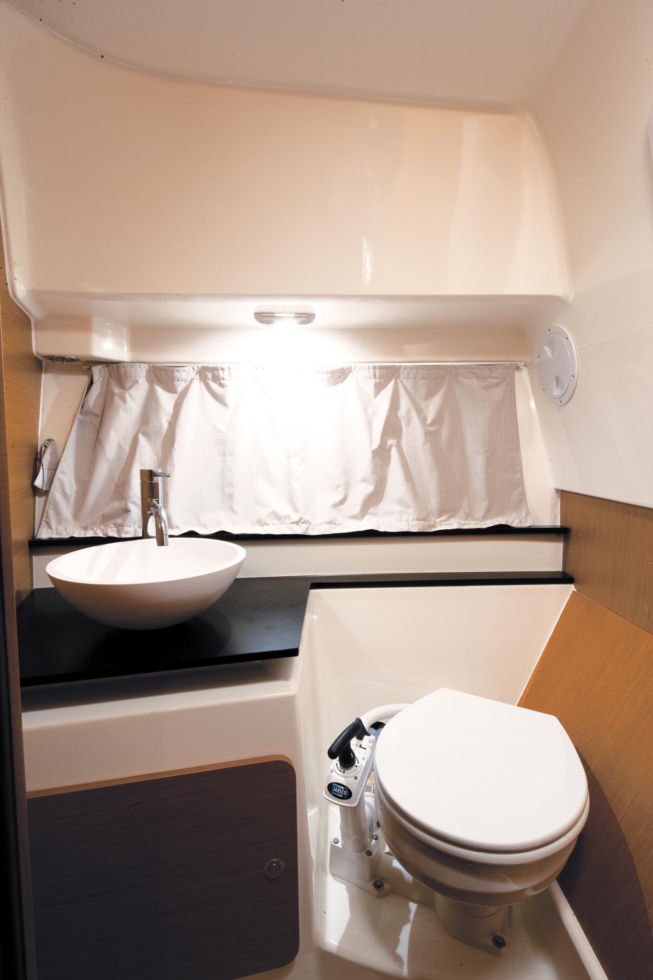 Im Inneren wird Sie die Cap Camarat 8.5 WA als Liebhaber des Komforts begeistern: Sie bietet einen großen Doppelschlafplatz, einen Salon, der ebenfalls zu einem Doppelschlafplatz umgebaut werden kann, einen Toiletten- und Waschraum mit Duschabteil, einen „Breakfast Point“ und zahlreiche Staumöglichkeiten. Die großen Rumpffenster überfluten den Innenraum mit Licht. Dieses Modell ist mit seinem angenehm hellen und trendigen Innenausbau ideal für die kleine Familienkreuzfahrt und komfortablen Übernachtungen zu viert ausgelegt.